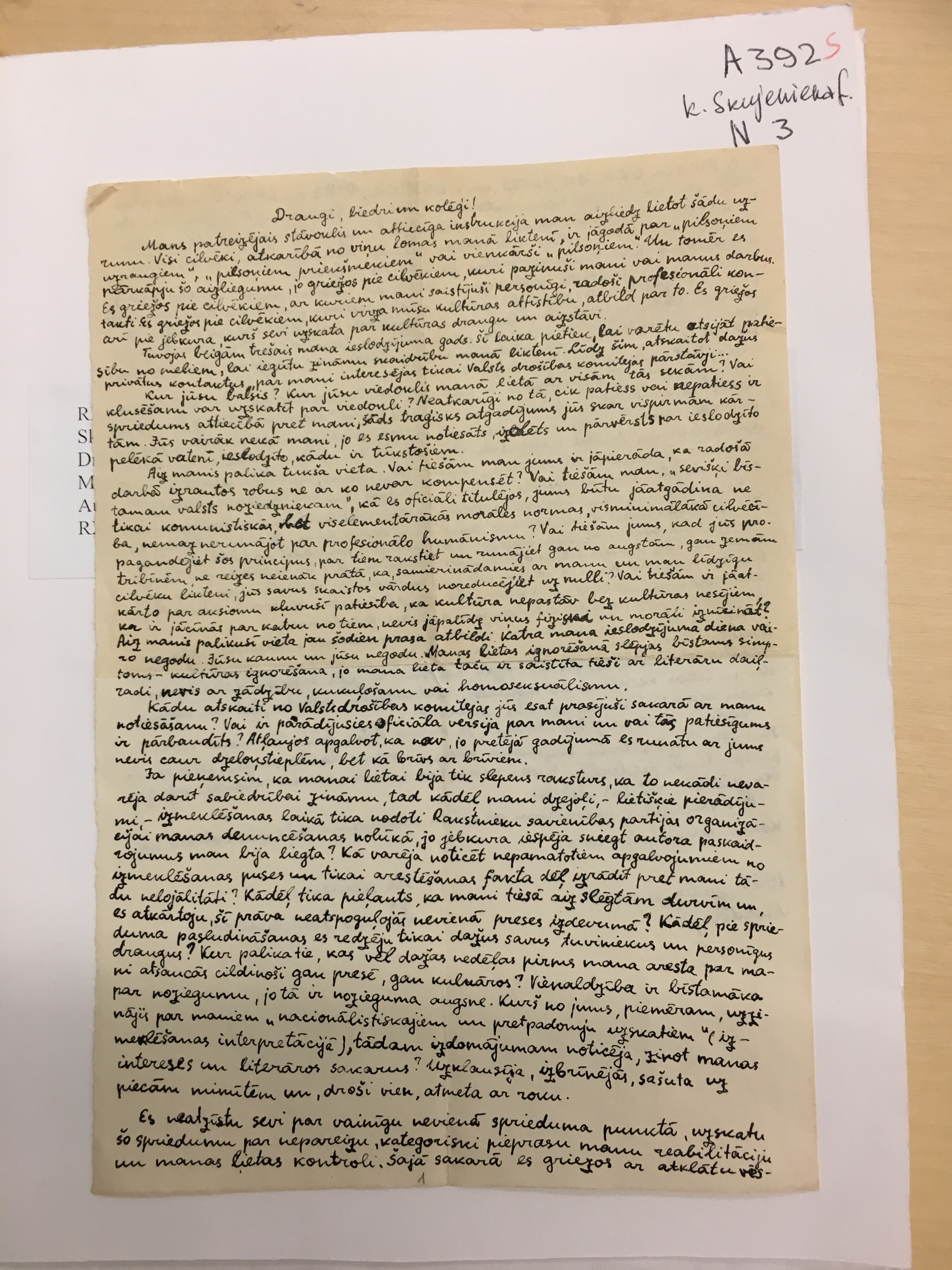 "Draugi, biedri un kolēģi!" Atklāta vēstule, rakstīta 196...