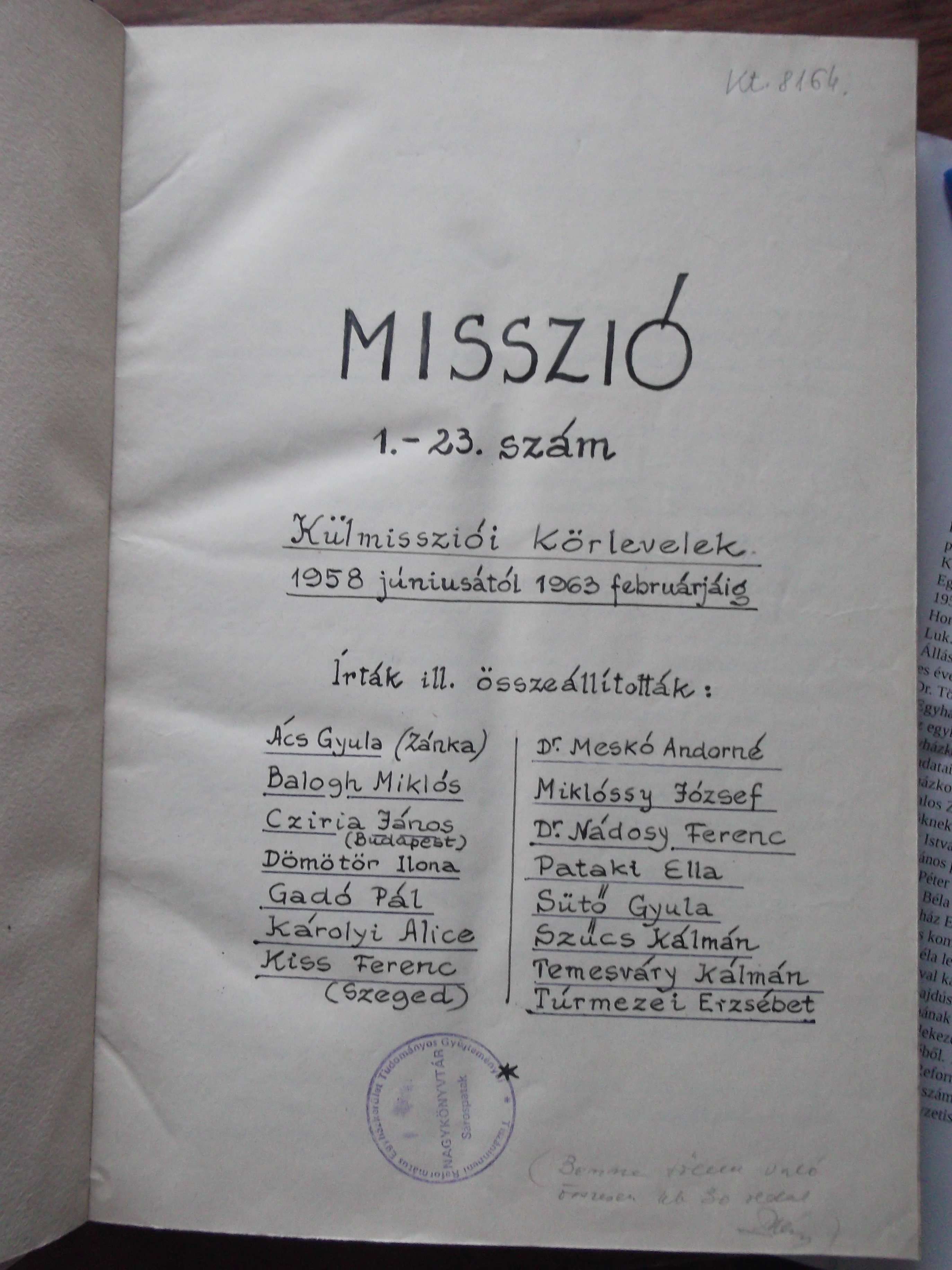 Misszió, 1963. (szamizdat)